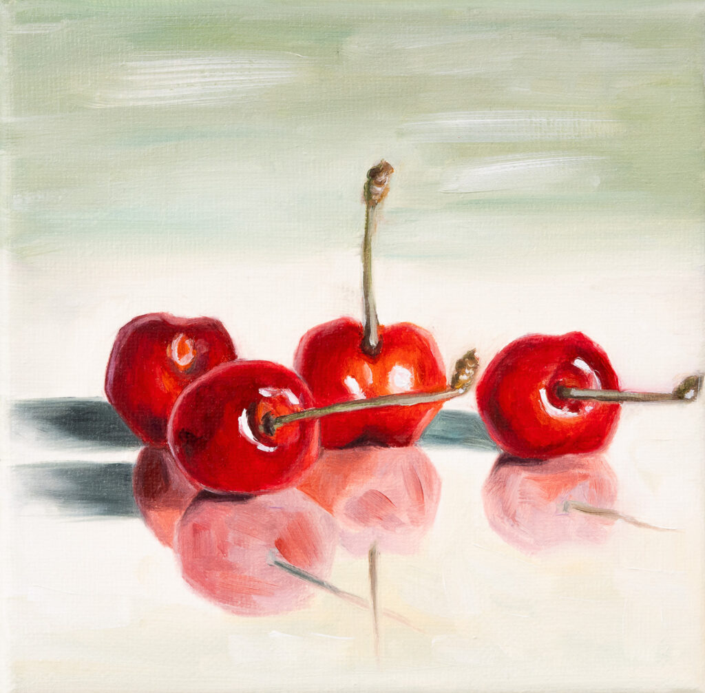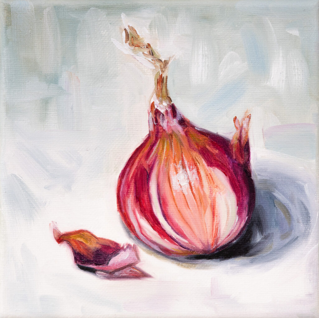 A collection of small oil paintings inspired by fruit, vegetables, and still life studies