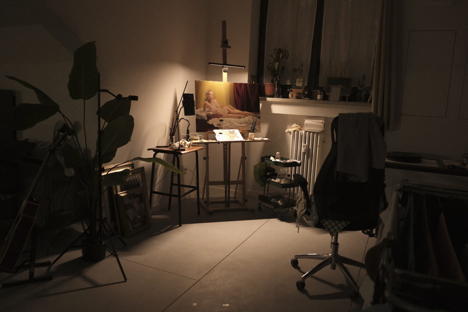 The work is approached with a quiet tone, emphasizing composition and atmosphere without narrative emphasis.