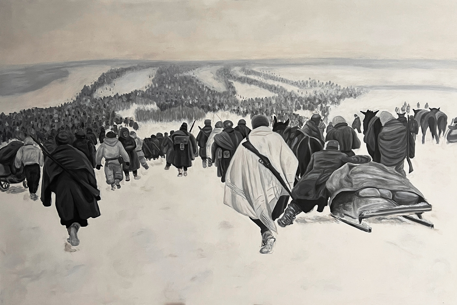 The painting presented both a technical and emotional challenge, requiring Sofia to step outside her usual subjects while maintaining a restrained and controlled pictorial language.