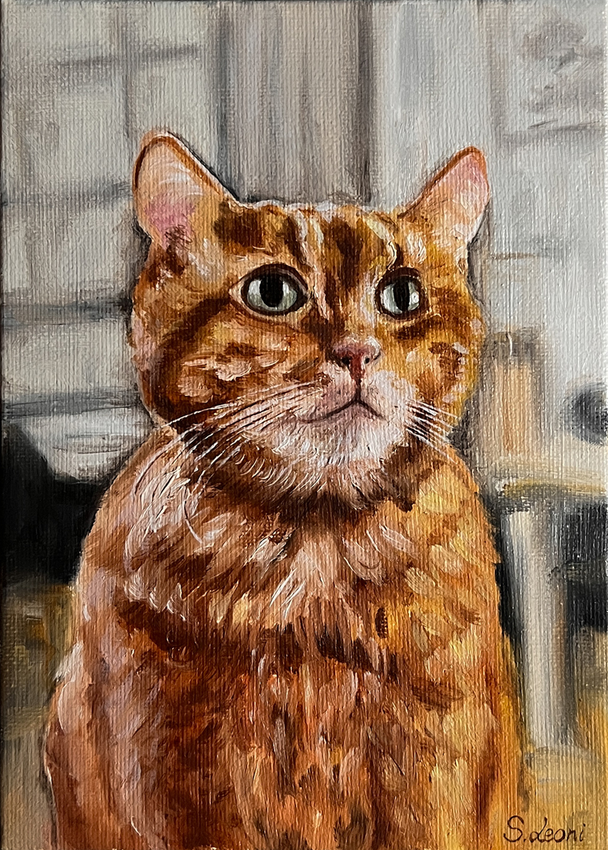 Sofia focused on a painterly portrait approach, trying to capture the animal’s essence and character through the reference images, with a light and affectionate tone.